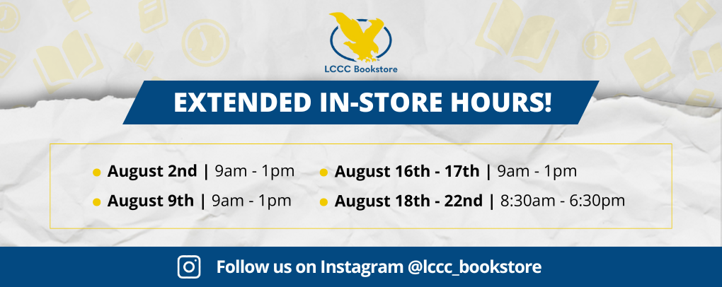 Did you know? Your purchase at the LCCC Bookstore makes a difference! From student scholarships to new programs, your dollars directly benefit the LCCC campus community and help us shape a brighter academic future for all. Thank you for shopping with us!